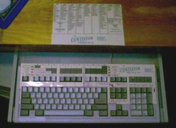 We have developed an overlay made from 110# heavy cardstock, in full color, with plastic lamination on both sides. These overlays are indespensable for contesters, veteran or rookie, and slide right over your IBM style keyboard. The price for either the CT , Writelog or RTTY Overlay is $14.00 plus $2.50 each shipping and handling.