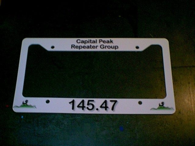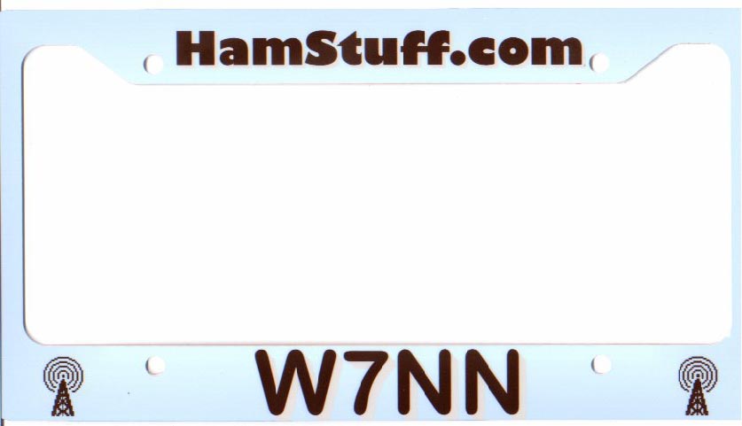 These frames are made from the same tough plastic we use for our famous call sign badges. We can use your club logo, or any graphic you see on our site. Use your callsign on the frames for your second car, use the frequency of your repeater, or just tell us what you need. License plate frames are $12.00 each, or two identical frames for $20.00 on the same order. S/H is $4.50 for any reasonable quantity on the same order.